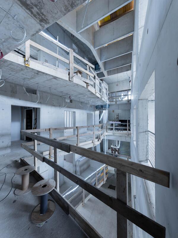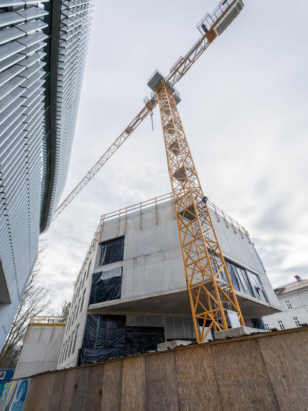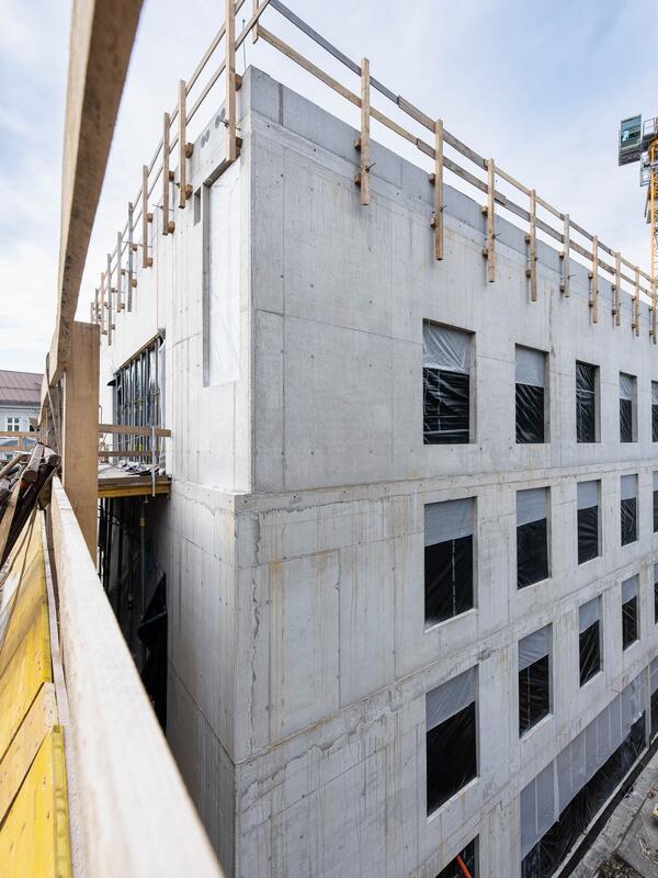Die Bauarbeiten des vom renommierten Architekturbüro Berger+Parkkinen geplanten Gebäudes, das mit einer Nutzfläche von 1895m2 auf 5 Ebenen in der Schwarzstraße 36 entsteht, sind sowohl zeitlich wie budgetär im Plan. 85 Prozent der Aufträge wurden gemäß Bundesvergabegesetz bereits vergeben – den Großteil konnten sich regionale Unternehmenspartner sichern. Derzeit sind an die 30 planende und ausführende Firmen an der Errichtung des Gebäudes beteiligt.