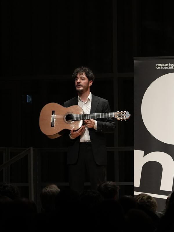 Das Mozarteum International Guitar Festival, das vom 9. bis 11. November stattfand, erwies sich als ein herausragendes dreitägiges Forum der internationalen Gitarrenszene und zog nahezu 800 Zuhörer*innen zu den Nachmittags- und Abendkonzerten an. Rund 30 Studierende aus Europa, Asien und den USA nahmen aktiv teil, zehn Gitarrenbauer aus Brasilien sowie mehreren europäischen Ländern präentierten ihre Instrumente.