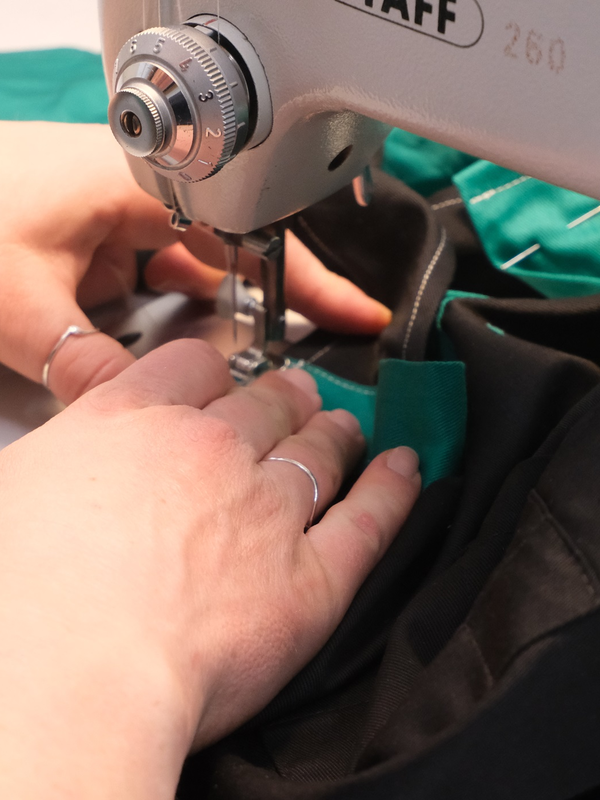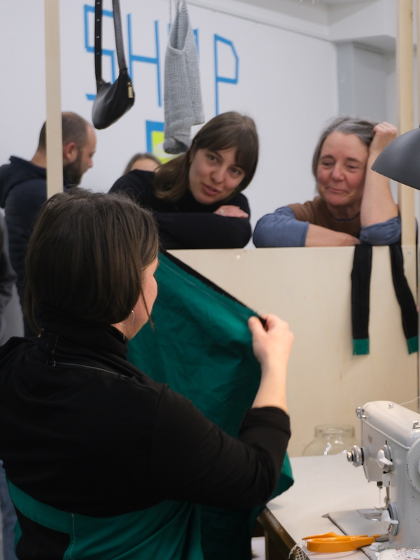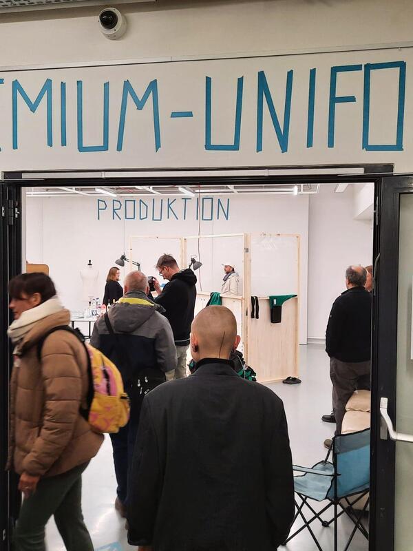 Das vorhandene Fetzenmaterial soll hier einen anderen Nutzen erfüllen. Durch seine Materialbeschaffenheit und Webart hat der Stoff den Vorteil, dass er wenig saugfähig, stabil und robust ist. Dadurch ist er gut geeignet für Textilien wie: Schürzen, Taschen, uvm. In der temporären Produktionsstätte PREMIUM-UNIFORM finden Prozesse der Gestaltung, Produktion, Dokumentation und Reflexion statt. Die fertigen Dinge werden laufend für dich im SHOP zur freien Entnahme platziert.