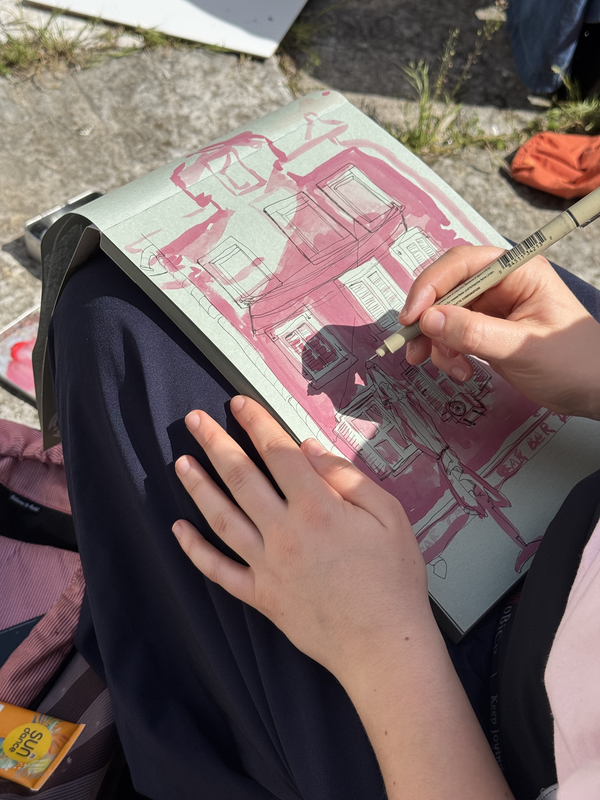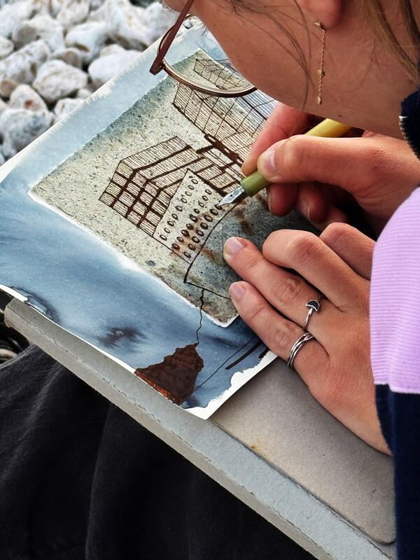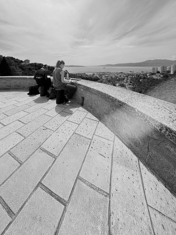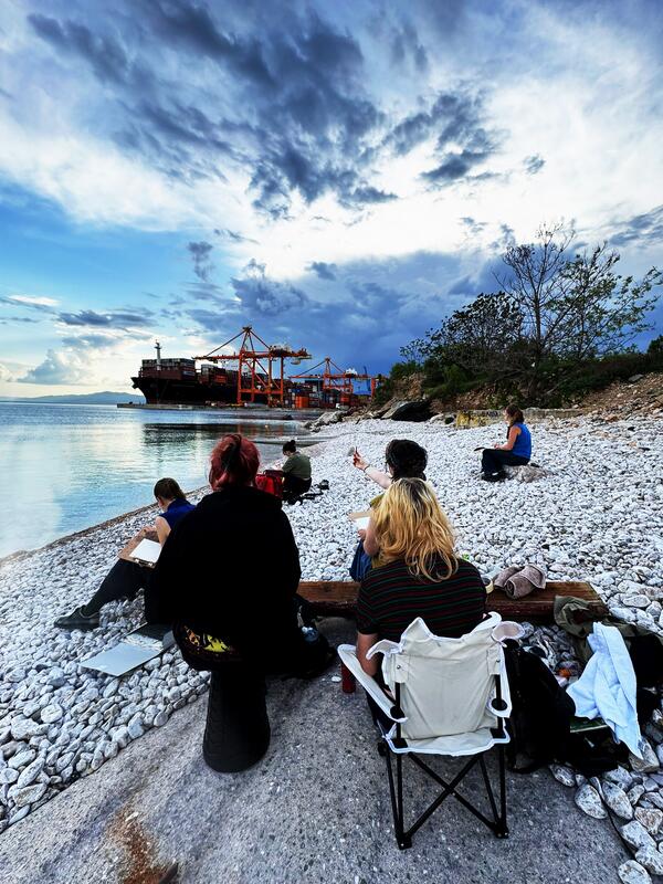 Urban Sketching in Rijeka: Sieben Szenografie-Studierende auf fünftägiger bildnerischer Entdeckungstour durch eine Stadt, die sich neu erfindet – roh, unfertig, dynamisch, widersprüchlich und voller kultureller Aufbruchsstimmung, zwischen Mitte und Peripherie, Industrie und Hafen, historischer Architektur und Contemporary - indoor und outdoor.