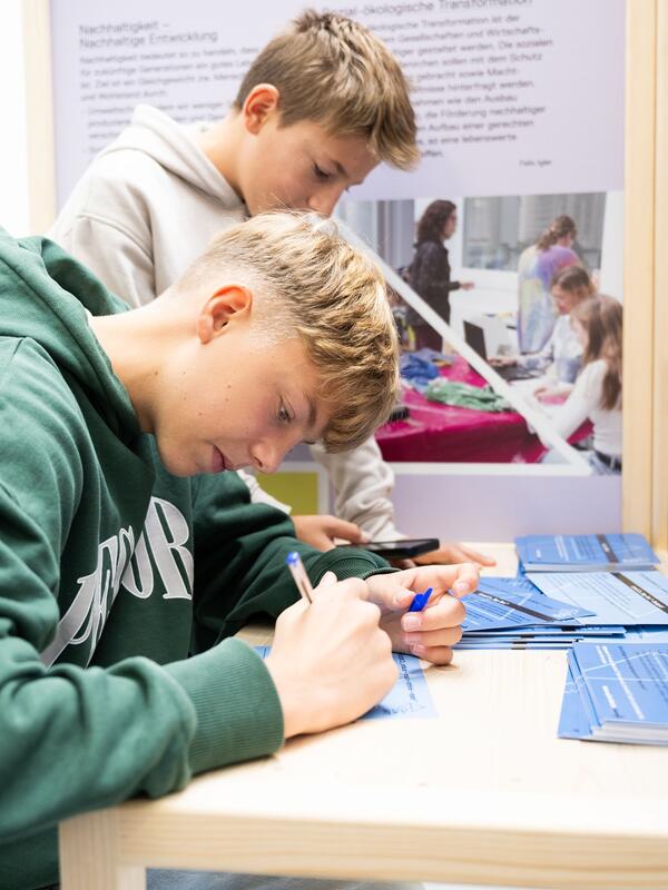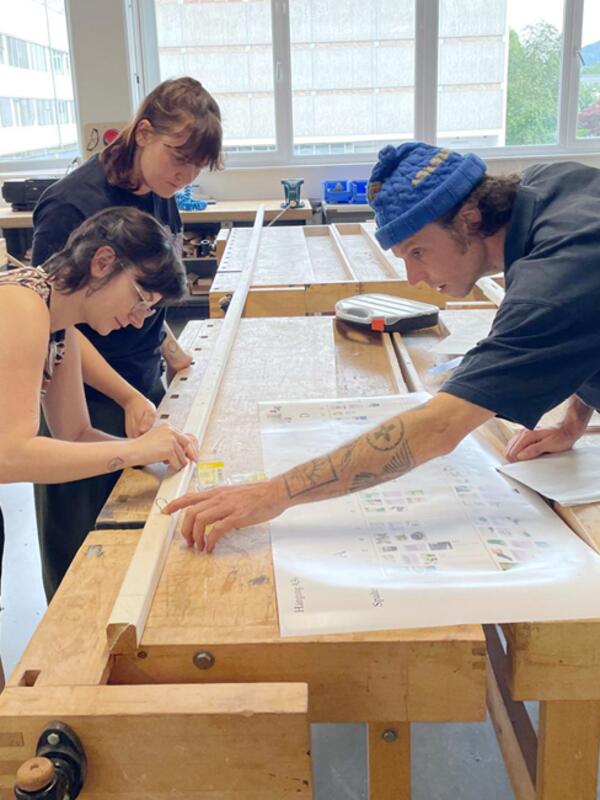 Zusätzlich zu unserem CreART-Lab verfügen wir auch über eine mobile Ausstellungsarchitektur. Über eine maximale Länge von rund 14 Metern erstrecken sich zahlreiche Präsentationsflächen. Magnetwände, Tische und Stühle, zwei iPad-Stationen und ein Screen bieten verschiedene Möglichkeiten zur Interaktion. Die Architektur ist so konzipiert, dass sie zu unterschiedlichen Themen neu bespielbar ist und an verschiedenen Orten und in variablen Längen und Anordnungen aufgebaut werden kann.