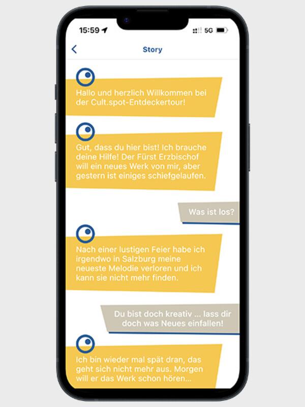 Stell dir vor, der berühmte Komponist Wolfgang Amadeus Mozart hat gestern seine Melodie verloren, die er dringend wiederfinden muss. Kannst du ihm dabei helfen? Unsere cult.spot App wird dich auf eine spannende Spurensuche durch die historische Altstadt von Salzburg führen. Während des Rundgangs mit der App wirst du Rätsel lösen, fesselnde Höraufgaben meistern und dabei Geheimnisse aufdecken. Tauche ein in Mozarts Welt und hilf ihm, seine verlorene Melodie wiederzufinden und wieder richtig zusammenzusetzen?