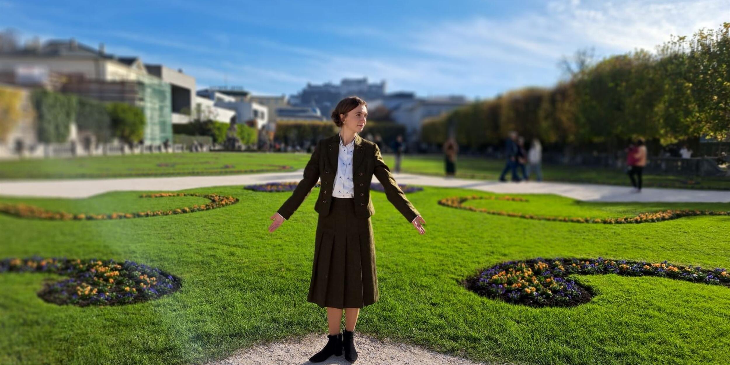 Die aus Rumänien stammende Regisseurin Cristina Giurgea – Studentin des Master-Studiums ‚Applied Theatre‘ am Thomas-Bernhard-Institut / an der Universität Mozarteum – spielt in ihrem Masterprojekt HERGESTELLT IN ÖSTERREICH mit Bildern, Stereotypen und Perspektiven von bzw. auf Salzburg und hinterfragt und dekonstruiert damit Ideen von Heimat und Identität. Ein Geflecht aus lokalen Stimmen und interaktiven Elementen lädt das Publikum dazu ein, Annahmen über nationale und kulturelle Identität, Zugehörigkeit und die wahre Bedeutung von Heimat in unserer vernetzten Welt zu hinterfragen. Denn stecken hinter den Salzburger Stereotypen wirklich echte Einwohner*innen oder reproduzieren sie nur endlos die gleichen Bilder, in die niemand mehr hineinpasst?