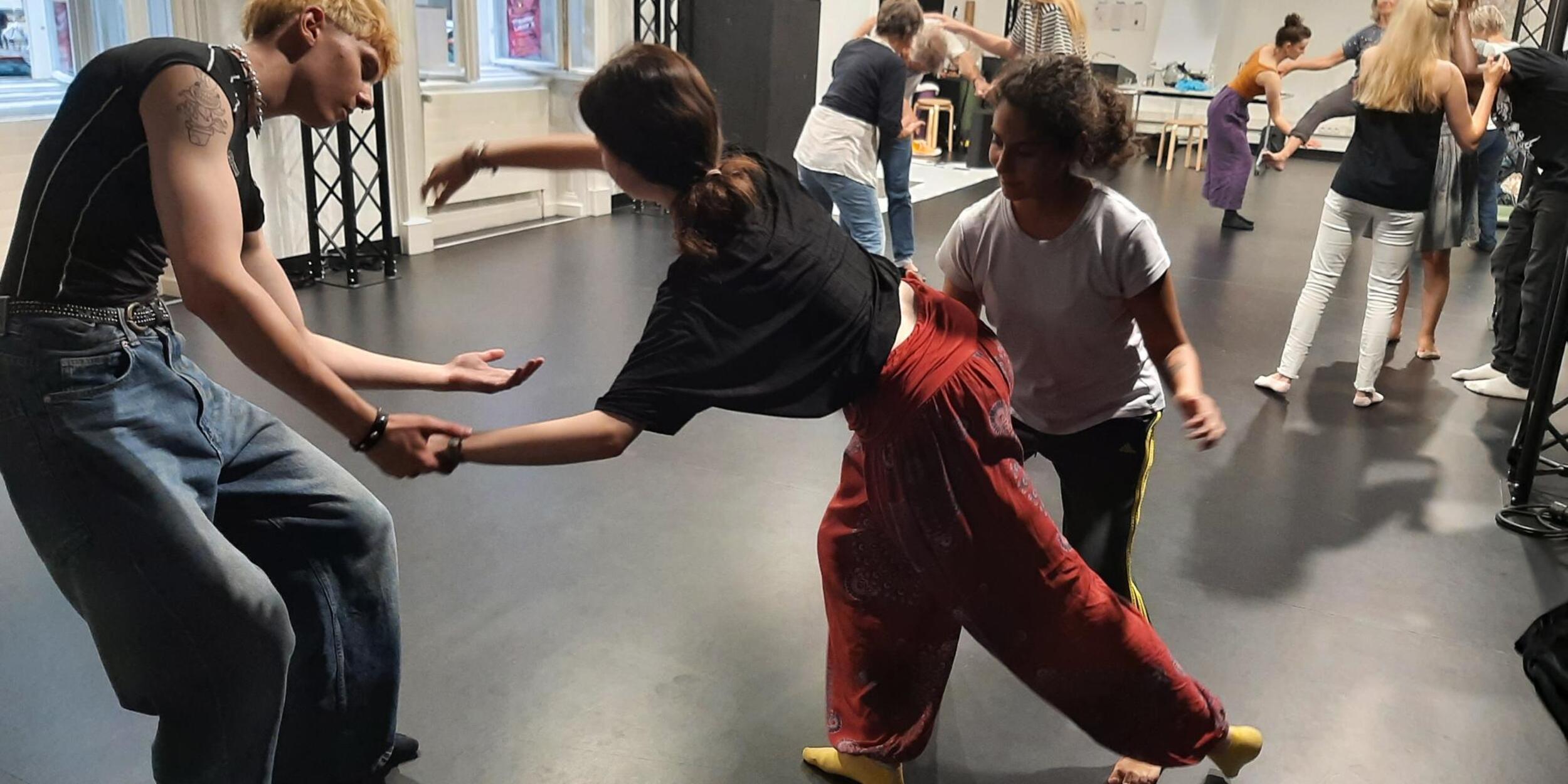 Praktiziert und ausprobiert wird Choreographisches genauso wie Schreiben, Sprechen, Rollenspiel, Games und thematische Setzungen. Vorlieben werden berücksichtigt. Kommt jede Woche neu vorbei!