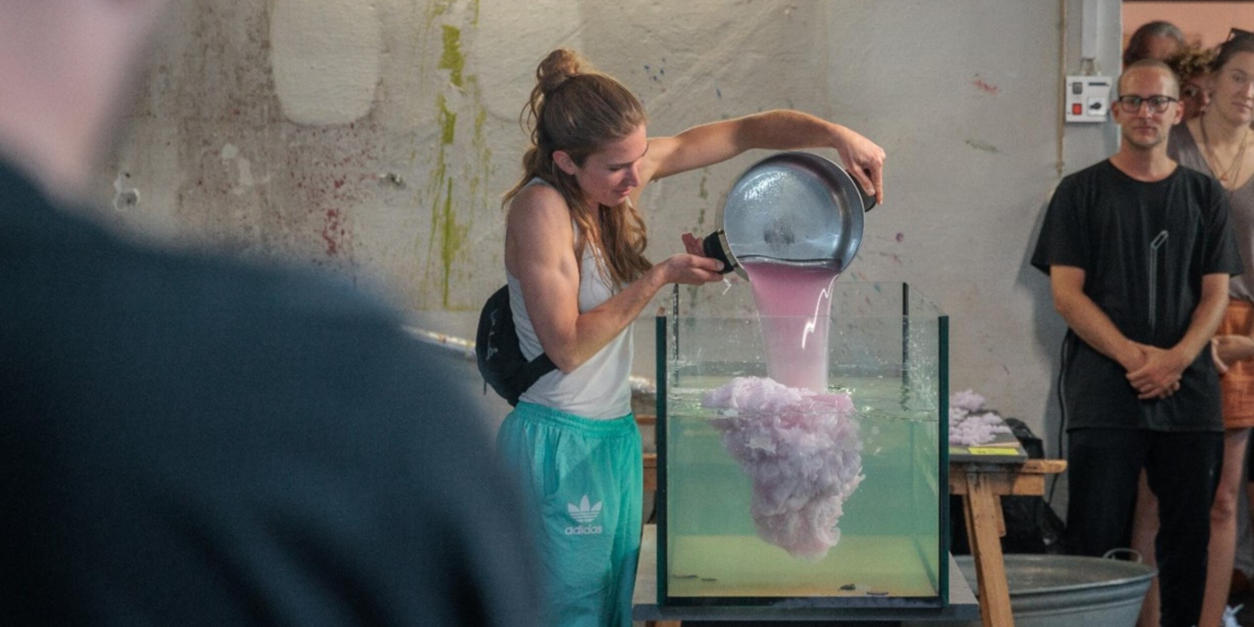 “helping out” ist eine experimentelle, performative Ausstellung in der Martha Stützle kooperatives künstlerisches Arbeiten beforscht. Während der Eröffnung werden Wachsgebilde gegossen, die so fragil sind, dass sie von mehreren Personen gleichzeitig aus dem Wasserbad gehoben und im Raum platziert werden müssen.